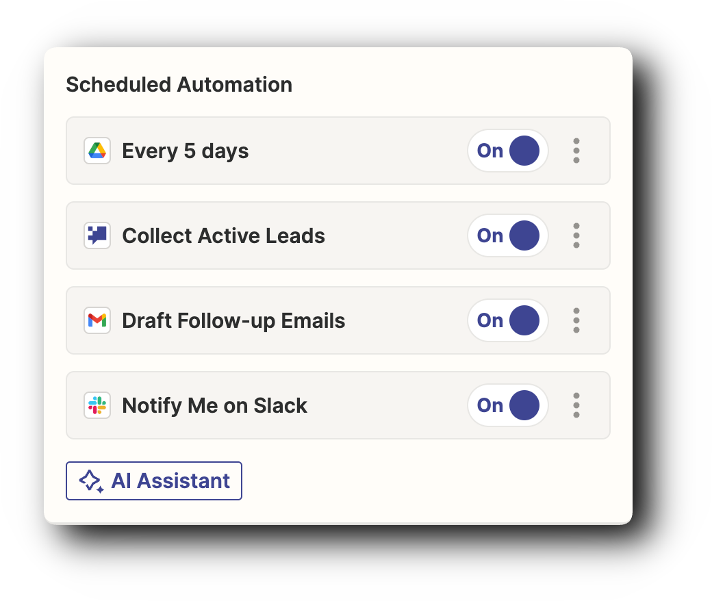 We offer automation of all the software you use within one single Chat with the help of Zapier Central